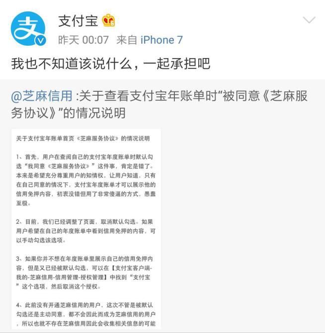 2018新年伊始,朋友圈晒支付宝年度关键词的图片就刷遍了社交平台。然而在大家感慨一年就如此匆匆过去的之时,网络曝出支付宝生成年度关键词时一行不起眼的小字默认勾选了同意芝麻服务协议。