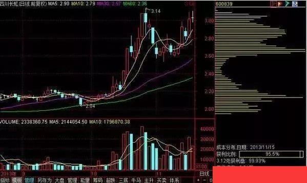4、获利比例:就是目前价位的市场获利盘的比例。获利比例越高就说明了越多人处在获利状态。