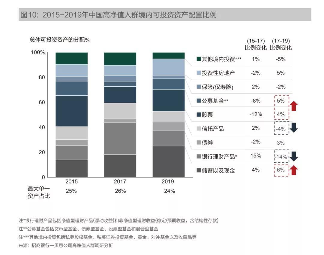 2019年,最大单一资产占比进一步下降,高净值人群依据市场情况和监管影响做出分散和调整。