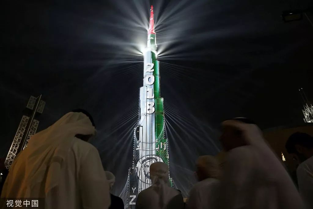 2018年1月1日,世界第一高楼哈利法塔举行点灯仪式。/视觉中国