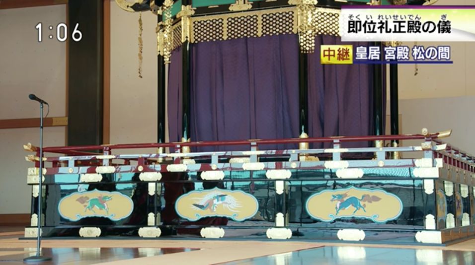 据《朝日新闻》报道,高御座为日本天皇即位的象征,现有的高御座是1915年为大正天皇即位礼而制作,已有104年的历史。它高约6.5米、重约8吨,以漆器和黄金装饰,富丽精致。