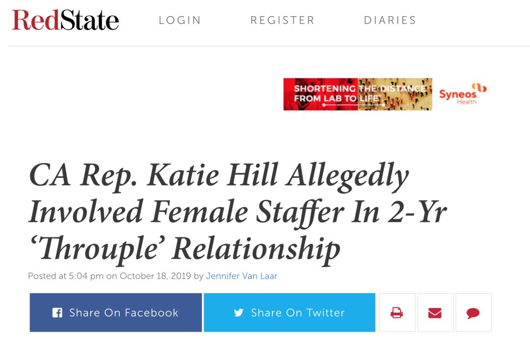 这一指控最初并未引爆热点,直至RedState再度发文。10月18日,该网站刊文称希尔和她的丈夫赫斯利普以及一名女性竞选工作人员存在三角关系,同时还公布了一张希尔与那名女性工作人员的裸照和希尔发给对方的信息。英国《每日邮报》也刊登了希尔的裸照。