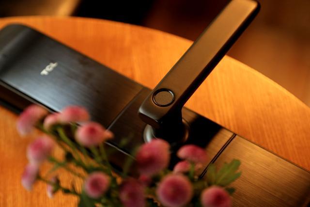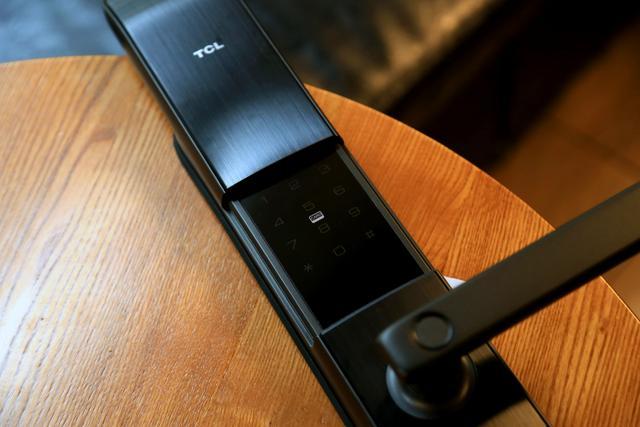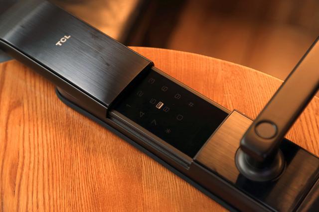 TCL物联网智能门锁K5具备了密码解锁以及NFC(TYPE A加密)卡识别开锁功能,但并非简单的外露设计,而是配有把手上方的密码输入区保护推盖。