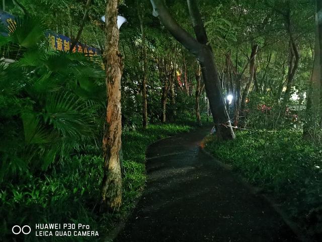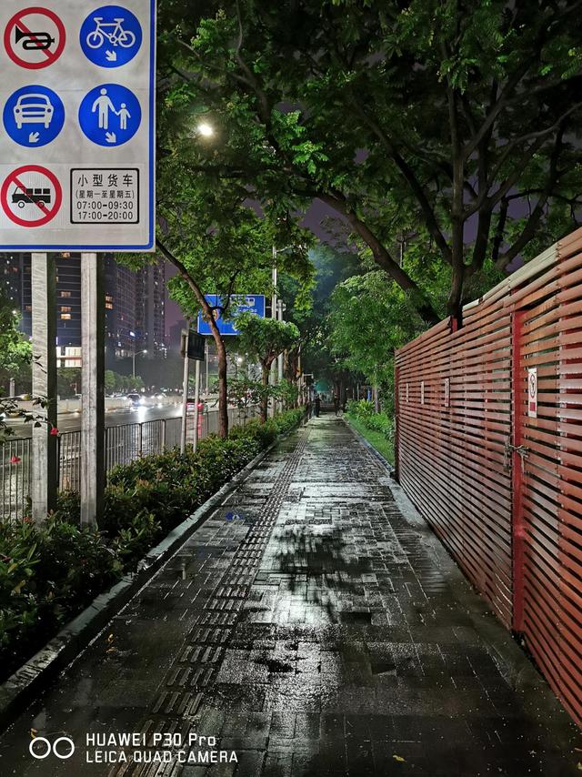 夜景环节是华为一贯的强项,RYYB算法加持下的华为P30 pro进光亮又提升40%。这张雨后街道的照片是在晚上十一点拍的,华为拍出来就像晚上七八点一样。树叶间隙下的灯光没有过曝,地上的阴影和还原十分准确,就连远处路灯照下来的光路都给还原了出来。论夜拍,华为真的没有怕过谁。