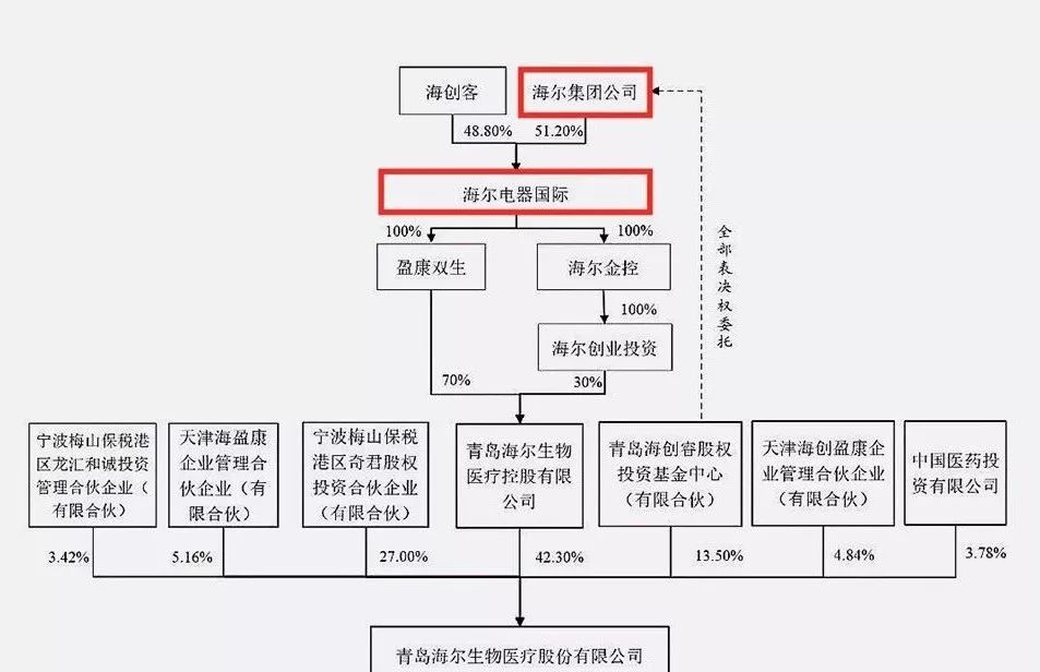 海尔生物前文已表,实际控制人为海尔国际,海创睿持有的10.13%股权表决权已委托给海尔集团。所以海尔生物的实控人也是海尔集团。