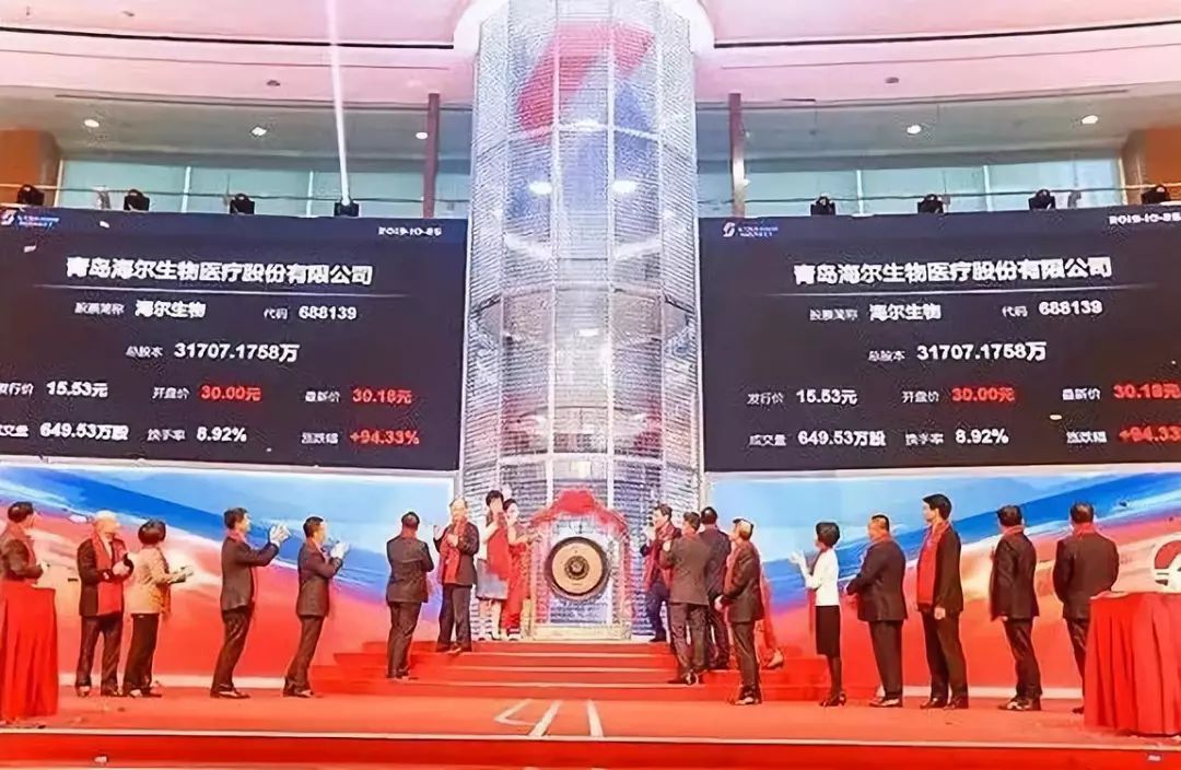 2019年10月25日,“青岛科创第一股”海尔生物医疗股份有限公司在沪交所挂牌,首日大涨96%,市值最高达96.6亿元。
