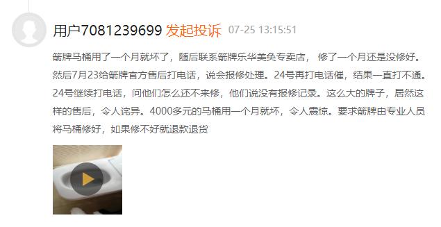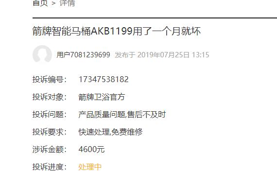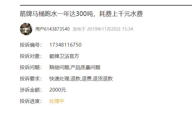 去网上一搜,箭牌卫浴的投诉真不少。我们截取部分消费者反馈: