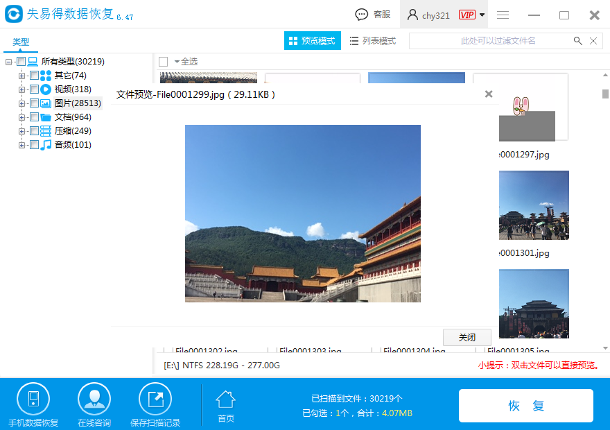 六、勾选需要恢复的文件,然后点击【恢复】按钮,选择好恢复路径,就可以把文件恢复到指定位置了。