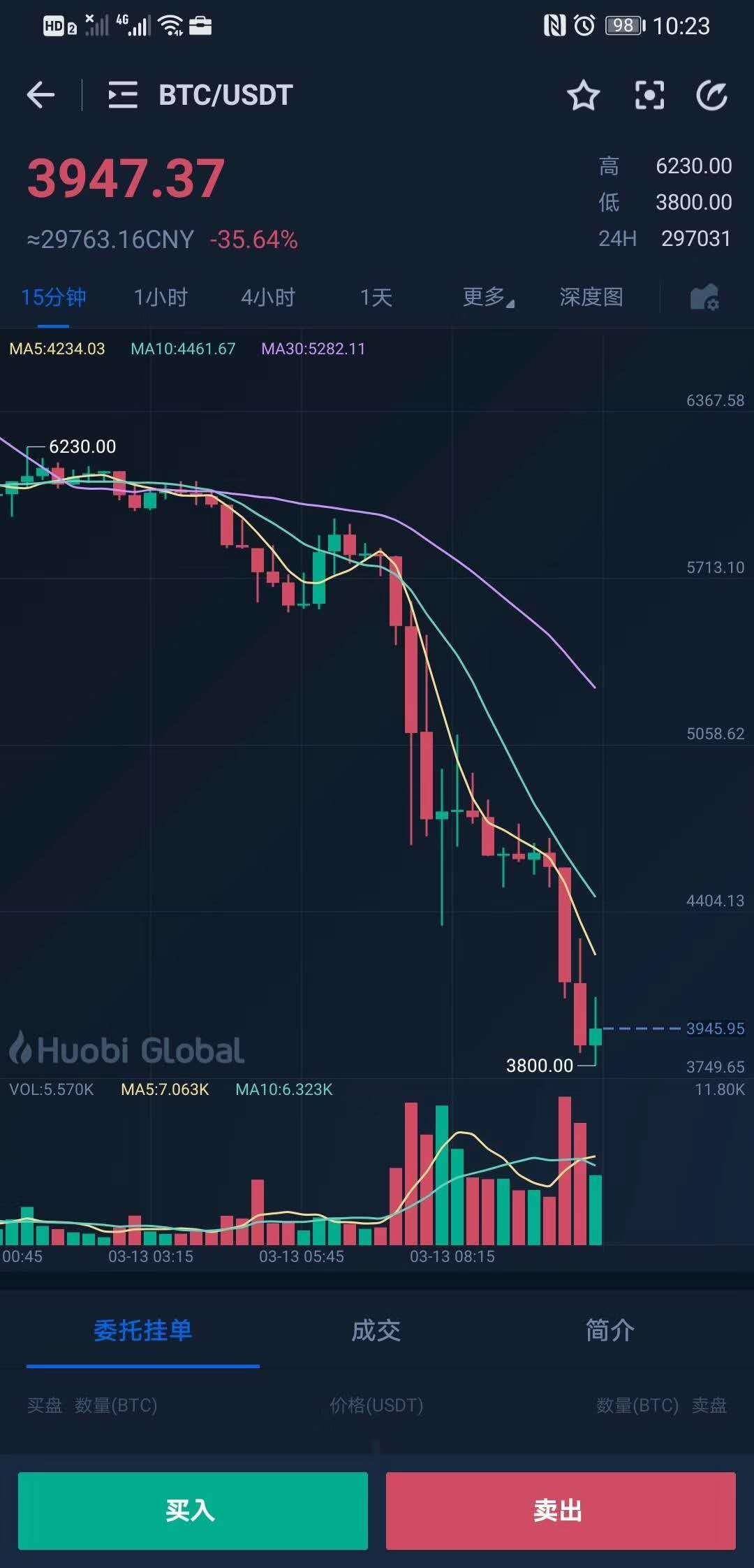 被称为可对冲风险的加密货币也不能独善其身,带头大哥比特币飞流直下三千尺,日内跌幅达40%,砸盘到3900美元以下。