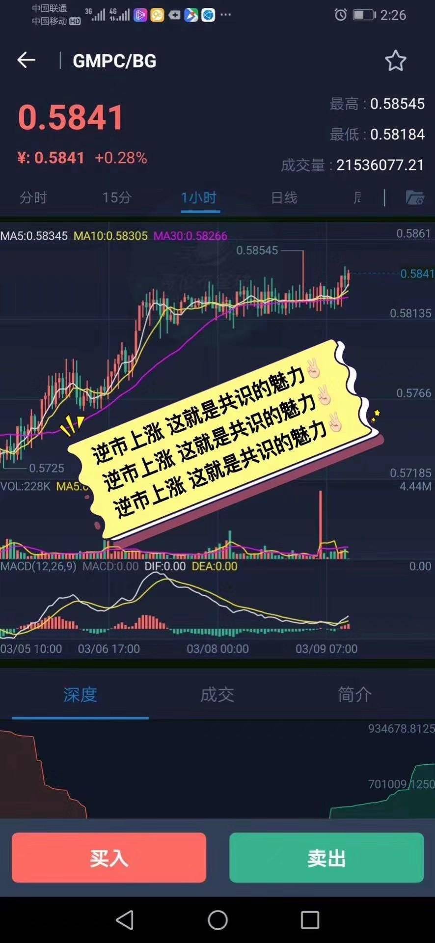 在风声鹤唳盘面上,GMPC却走出独立行情。非小号显示 ,在大单成交量的配合下,GMPC占稳0.58元重要关口,并缓慢上扬。