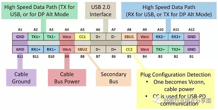 Type-C有两个高速数据通道,(TX1+/TX1-,RX1+/RX1-)和(TX2+/TX2-,RX2+/RX2-),USB 3.1仅仅使用了其中一个通道,另一个通道可用于备用模式(传输DP信号等),换用Type-C最大的理由就是USB 3.2可以充分使用这两个高速通道。值得一提的是,如果这两个高速通道都用于备用模式,这时候速度就会下降成USB 2.0的High-Speed。