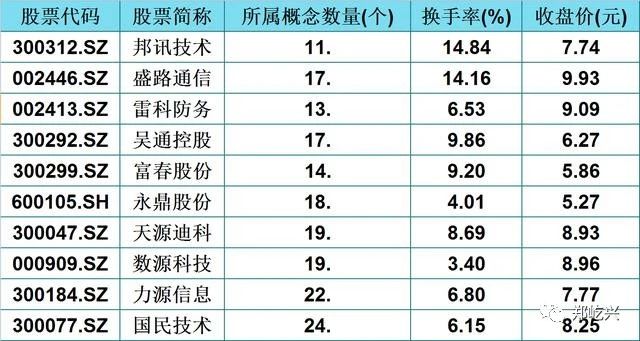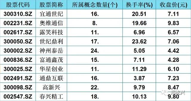 笔者整理了30只所属概念数大于5,股性活跃的5G低价股,其中前20只分别为:宜通世纪,奥维通信,露笑科技,世纪鼎利,神州泰岳,富通鑫茂,华星创业,通鼎互联,高新兴,春兴精工,邦讯技术,盛路通信,雷科防务,吴通控股,富春股份,永鼎股份,天源迪科,数源科技,力源信息,国民技术。