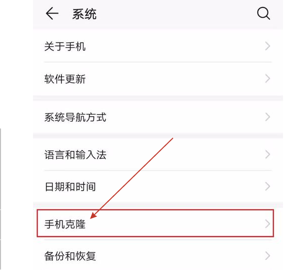以华为手机为例,打开“设置”-“系统”-“手机克隆”,点击“这是新手机”-“iOS”;