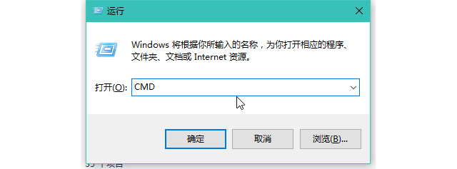 然后在弹出的窗口选项中输入“CMD”,点击确认。