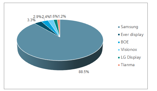 而在AMOLED的供应端,目前还是三星一家独大。2019年三季度,三星仍占据全球AMOLED市场88.5%的市场份额,处于垄断地位。但目前AMOLED柔性面板高昂的成本注定只会成为少数人的消费品,因此可以预见的是,在折叠屏迎来下一轮技术革新并成功下放到普通消费者也能接受的价格之前,三星折叠屏技术的突破对行业发展会有着决定性的作用。