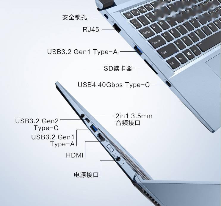 需要注意的,雷神一格 S1 笔记本搭载了全速的USB4接口,就数据传输速度而言达到了雷电3 的40Gbps。