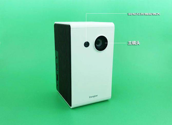 副镜头主要起到对焦的所用,虽然主镜头是定焦镜头,但难免机器被移动导致画面模糊。为此,当贝副镜头里面内置了ToF传感器,结合重力传感器所捕捉到的机器位置变化,只要识别当贝小投影C2被固定即刻实现自动对焦。相比较传统的摄像头对焦,效率提升10倍以上,加上自动梯形校正,实现真正的想放哪里放哪里!