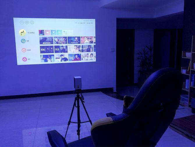 在实际视频播放表现中就更能够让用户满意,毕竟观影需要一定的距离,所以只要不是贴着投影墙面或者幕布上看,是很难发觉清晰度不足的。笔者也体验了一把大屏幕看足球的效果,还是非常带劲儿的。以后客厅电视被霸占,也不用再看手机小小的屏幕了,直接躺着卧室看当贝小投影C2就好。