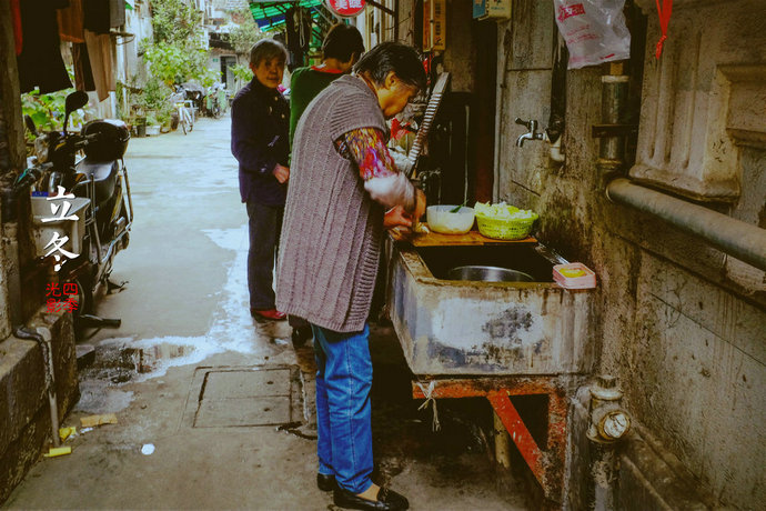 阿姨们的切菜准备着午饭,我们慢慢走过