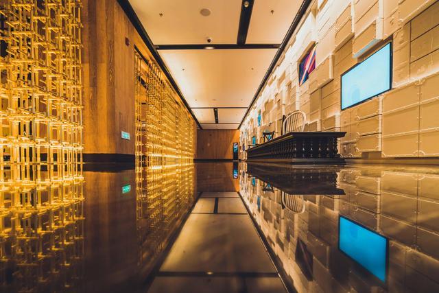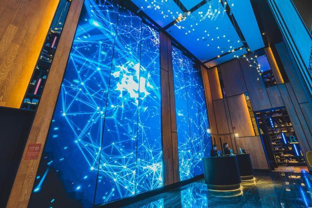 这里最最最最最牛的就是设计感,在门外的时候就可见一斑,而进入到大堂之后,这种设计感就更加的明显了。大堂的右侧,是办理登记的地方,就这样的一个地方都显得相当的高大上。直达顶部的巨型LED墙,变换着闪耀着光辉,视觉冲击力十足,在这样的地方拍照,瞬间显得高大上。