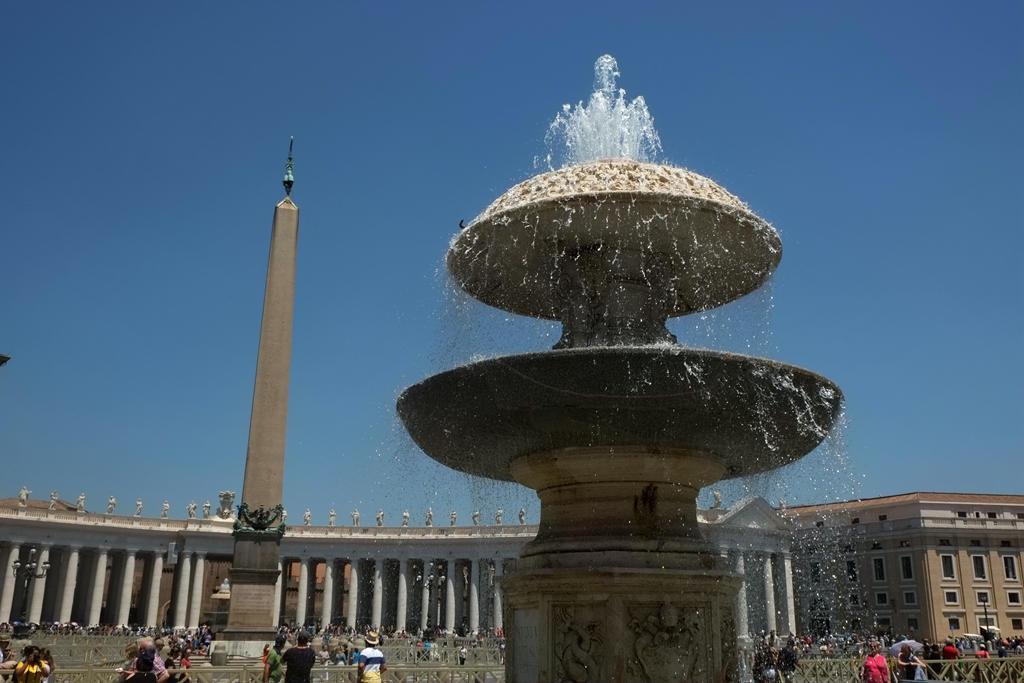 到达的时间尚早,游客还不多。从不起眼的一个门进入,豁然开朗,巨大的广场映入眼帘,中央竖立着来自埃及的方尖碑,不远处古典造型的喷水池里盛开一朵朵的水花。围绕方尖碑,是两个半圆的长柱廊,仿佛两条手臂抱住来自远方的你。圆柱上有圣人像,据说有140个之多。这个广场,出自建筑大师贝尔尼尼之手,是在圣彼得大教堂完工之后建造的。