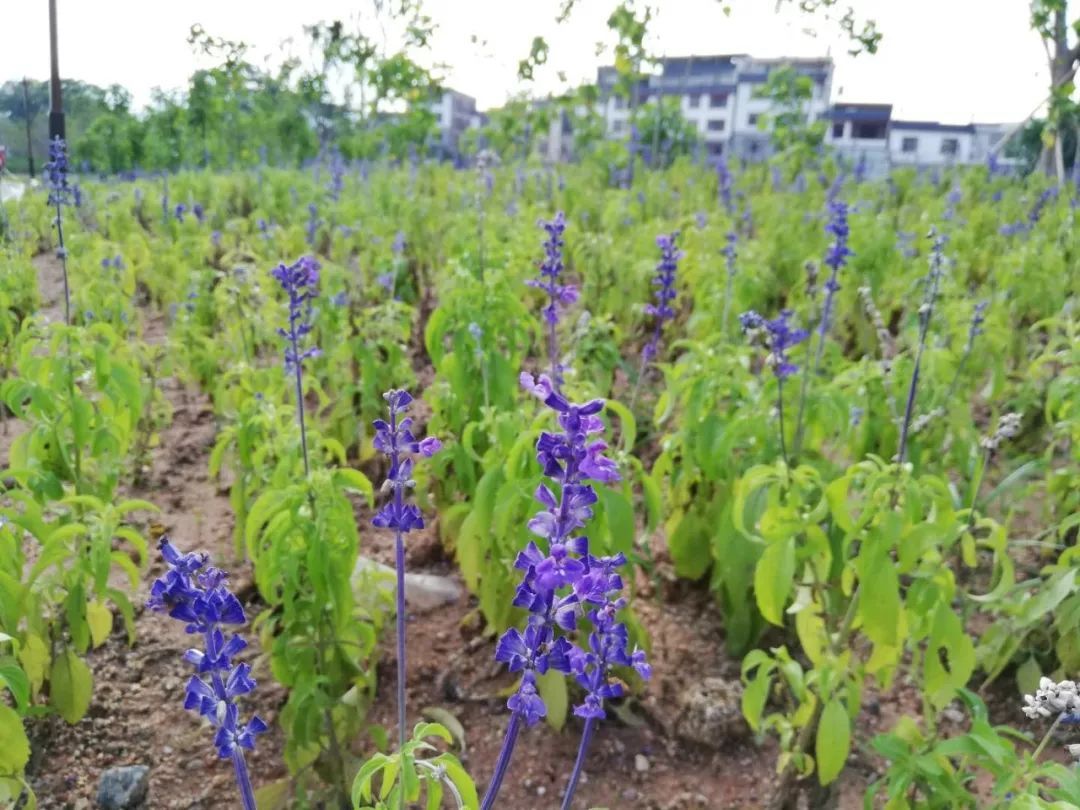 第二个色带—紫色带,主要以紫色系植物为主,片植碧桃、紫玉兰、小叶紫薇、木芙蓉、野鸦椿等观花小乔木。观花地被主要有翠芦莉、深蓝鼠尾草、百籽莲、紫花马缨丹。每到开花季节,这些树木草花便会繁花似锦,整片开出梦幻般的紫色花带,带给你高贵、纯洁。