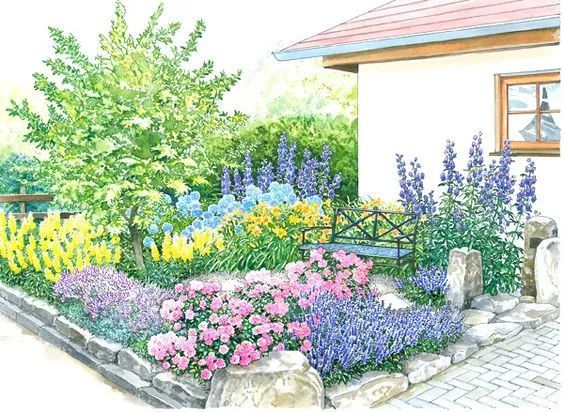 以设置场所不同而异,较理想的是绿色的树篱或主篱,也可以墙壁或棚栏为背景。背景与花境之间可以留一定的距离,也可不留。