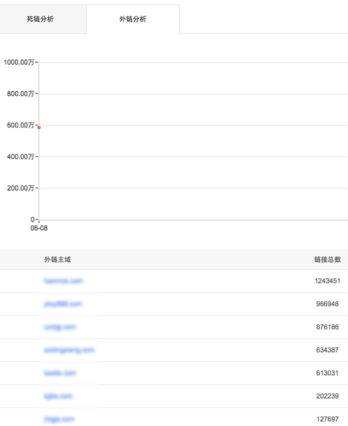 SEO每天一贴一直以来外链平稳增加,但外链数不多,我没有用任何方法建设过外链,直到今年初也不到10万级别。但3月份我查询外链时,外链数到了20万左右,新增加的10万全部是类似上图所示的垃圾外链。现在百度站长平台显示的外链又有了惊人变化: