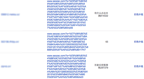 所以,SEO每天一贴目前外链的98%以上是别人给制造的垃圾链接。这些链接都指向搜索页面,锚文字中都带有品牌名,所以我判断这不是SEO行业的竞争对手在陷害,而是那些灰色行业的SEOer试图利用有一定权重的域名带来排名和品牌曝光度。但客观效果和竞争对手陷害是一样的。