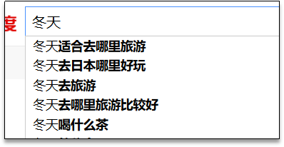 举例说明: 我们以搜索“冬天” 为例 出现以下下拉框。