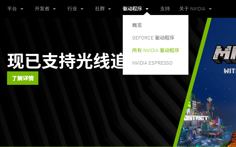 3.选择"驱动程序"下的"所有NVIDIA驱动程序"