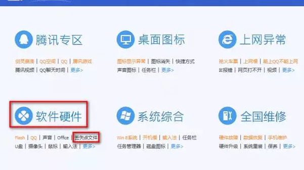 2、比如电脑管家,进入电脑诊所,选择软件硬件下方的丢失dll文件进行修复即可。