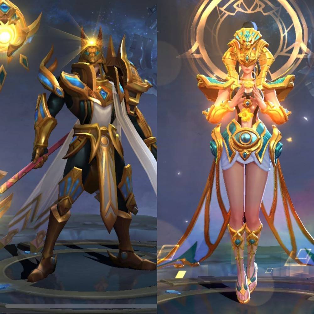 杨戬和女娲,这两位英雄都是神将英雄。同样的他们俩的伴生皮肤埃及法老和尼罗河女神同是古埃及风格,这两款皮肤的造型和色彩也是非常搭配的。黄金色的服饰让这两款皮肤更加亮丽,看上去也非常像是一对情侣皮肤!