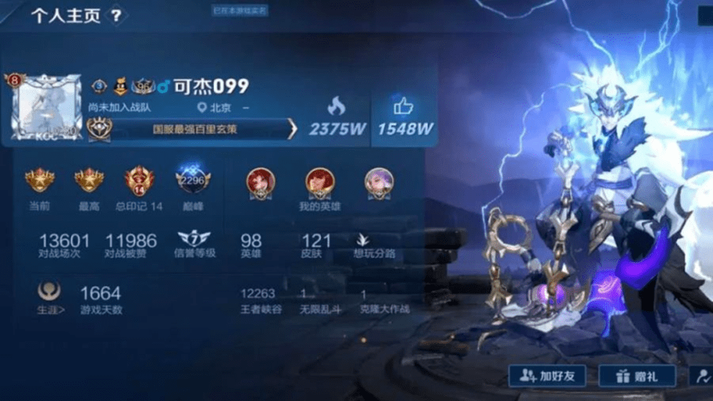 不得不说,可杰游戏账号的热度是非常高的,达到了恐怖的2375万,因为很多粉丝喜欢在这里看可杰的铭文,还有出装思路。而且可杰的战绩最近是一直开放的。就在最近,可杰也是在冲击着巅峰赛排名,可能是状态原因,导致可杰的排名一直不稳定,并没有像以前一样拥有统治力了。并不能一直霸占着前十的位置,像一个战神一样。