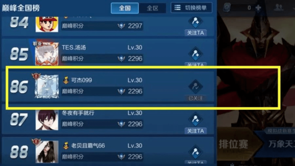 王者荣耀的火爆怕是已经千百倍超出了人们的预料。生活中不管在什么地方大家都能看见打王者的身影。可杰作为超人气主播,热度一直居高不下,这离不开他的超强的实力。安卓QQ区常年霸占巅峰赛第一,连续几个赛季蝉联巅峰赛第一。