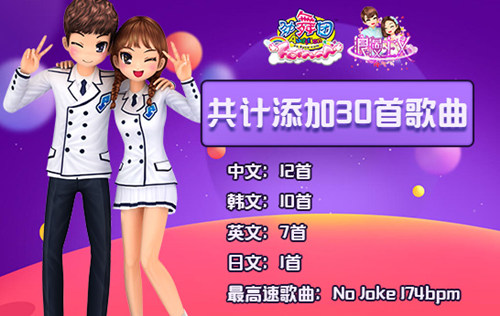 爱,是人类永恒的主题,也是音乐中不可缺少的题材。在爱中,我们体会喜悦、感动,也经历痛苦与悲伤。当音乐响起,美妙的天籁之音伴随着浪漫的舞步,这是一场“爱”的视听盛宴!本次更新《劲舞团》为玩家带来了30首潮流歌曲,其中中文12首,包括张杰在《青云志》的主题曲《浮诛》、缝纫机乐队的《都选C》以及蔡依林的《说爱你》;韩文10首,包括李世真的《玻璃心脏》、禹智皓的《Okey Dokey》、朴信惠的《爱上你的那一天》;英文7首,Sia的《Snowman》、Joel Hanson的《Traveling Light》;日文1首,花泽香菜的《恋爱循环》等。快来《劲舞团》看看2月份的曲库还加入了哪些你熟悉的歌曲吧!