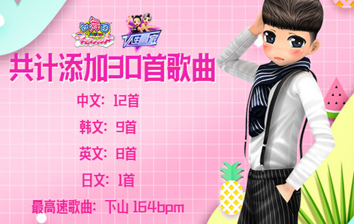 爱情是许多歌曲的灵魂,本次更新《劲舞团》为玩家带来了30首潮流爱情歌曲,其中中文12首,包括西瓜JUN的主题曲《狂野想乡》、莫文蔚的《慢慢喜欢你》以及刘若英的《成全》;韩文9首,包括iKON的《BEST FRIEND》、朴智敏的《再次》、南英珠的《脆弱的善良》;英文8首,Jazmine Sullivan的《After The Hurricane》、Monica的《Believing In Me》;日文1首,Aimer的《星尘中的维纳斯》等。快来《劲舞团》和你的家族或者搭档一起来体验一下这些歌曲吧!