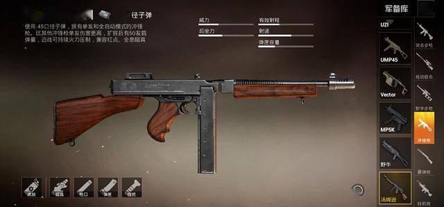 UZI是许多玩家公认最强的近战武器,可是由于射速太快的问题,35发子弹很容易就打完,敌人往往会抓住这个时机反扑,而使用汤姆逊冲锋枪就没有这个烦恼,装上冲锋枪快速扩容之后,更换弹夹的时间只需要1.8秒,你的武器里就拥有五十发子弹,这个优势是其他武器所不能比拟的。