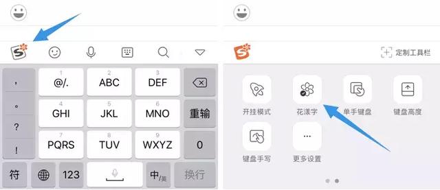 搜狗输入法:每个输入法对特技字体命名是不一样的,搜狗输入法叫做花漾字,点击左上角的搜狗图标,滑到第二页就可以看到花漾字了。