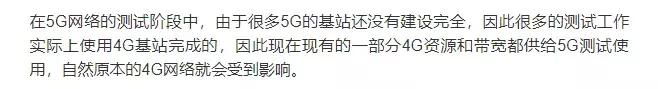 还有一种观点,说4G变速,是因为5G的测试用户挤占了4G用户的空间。