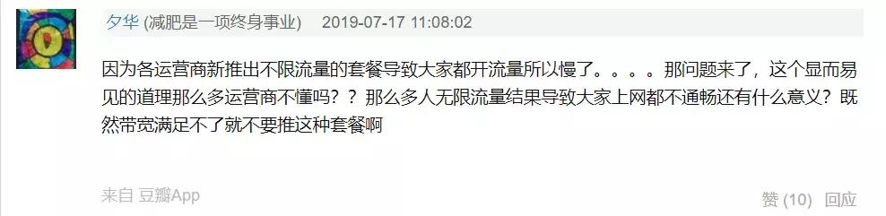 还有网友解释称,说现在各家运营商都推出无限流量套餐了,大家时刻在用流量,所以手机网速变慢了。