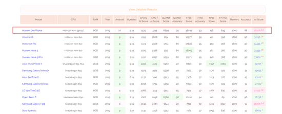 华为麒麟990设备现身AI跑分网站:登顶排行版成绩第一