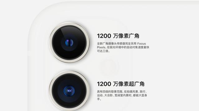 后置升级为双摄,1200万像素超广角镜头+1200万像素广角摄像头,还新增了夜间模式。在视频拍摄方面,前置和后置摄像头均可拍摄60 fps的 4K视频。