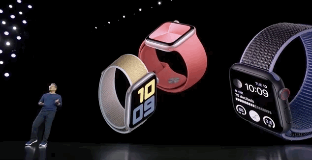 随后,Apple Watch Series 5 正式登场,其配备了新款常亮显示屏,