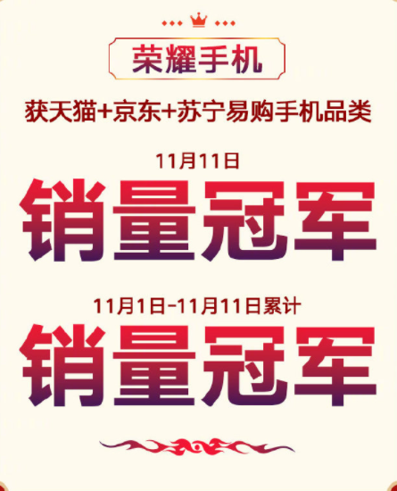 至于荣耀这边,同样是超额完成任务。因为荣耀的冠军同样含金量很高,荣耀斩获天猫,京东,苏宁三大平台,手机品类双十一当天销量冠军和累计销量冠军。这算是手机厂商当中最高的荣耀了吧,可见大家对荣耀手机的喜欢程度有多高。