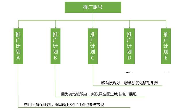 一个好的推广账号结构是基础,不是说没有这样的结构就无法推广产品,百度就不给排名,其实往往一个好的推广结构会在一些很小的细节上面体现你的账号优势,尤其是大家旗鼓相当的时候,价格都差不多,创意写的都还可以。所以千万不能忽视,这也是一个合格的网站运营必须要具备的思维。