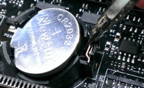纽扣电池放电十分容易,主板上都会有一个纽扣电池,使用手扣或者起子将纽扣电池的卡榫松开之后,那么主板上的CMOS电池也随之自动弹起,这时我们直接用手取出即可,将纽扣电池放置十秒钟,并重新安装原位,我们在进行开机测试一下。