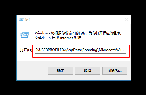 1、按下【Win+R】组合键打开运行窗口,输入:%USERPROFILE%\AppData\Roaming\Microsoft\Windows\Start Menu\Programs\Startup 点击确定,如图: