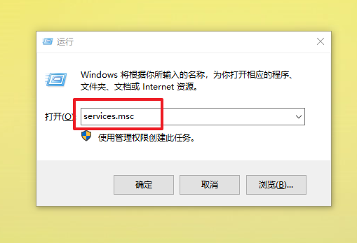 1、 同时按住“win+R”打开运行窗口,输入“services.msc”并回车打开服务页面