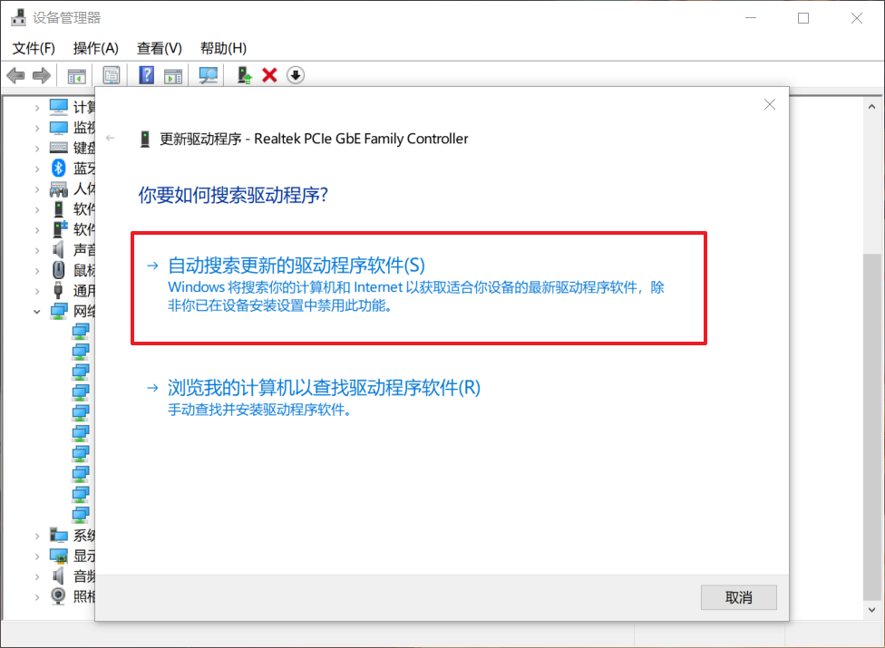 7、 出现更新驱动的页面之后,选择自动搜索,并根据提示进行操作即可